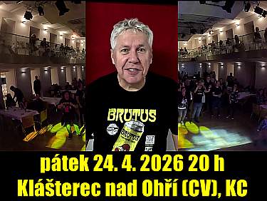 Klub Attic v Litvínově, kde jsme měli 2026-04-24 podle plánu být, měl nějaký problém. Ještěže v Mostě žije naplno Nový Obzor, kde budeme na podzim. Termín jsme využili pro Klášterec na Ohří. V roce 1993 jsme tam byli poprvé, jel jsem tam v týdnu pražským rychlíkem vylepit plakát. Kulturní centrum bylo tehdy ještě před rekonstrukcí. Dnes je to luxusní podnik, sklo a mramor. Plakáty nechybí ani dole u řeky v lázních Evženie ve výčepu lithiové minerálky. Sál má dobrou akustiku, hezky jsme se pobavili.